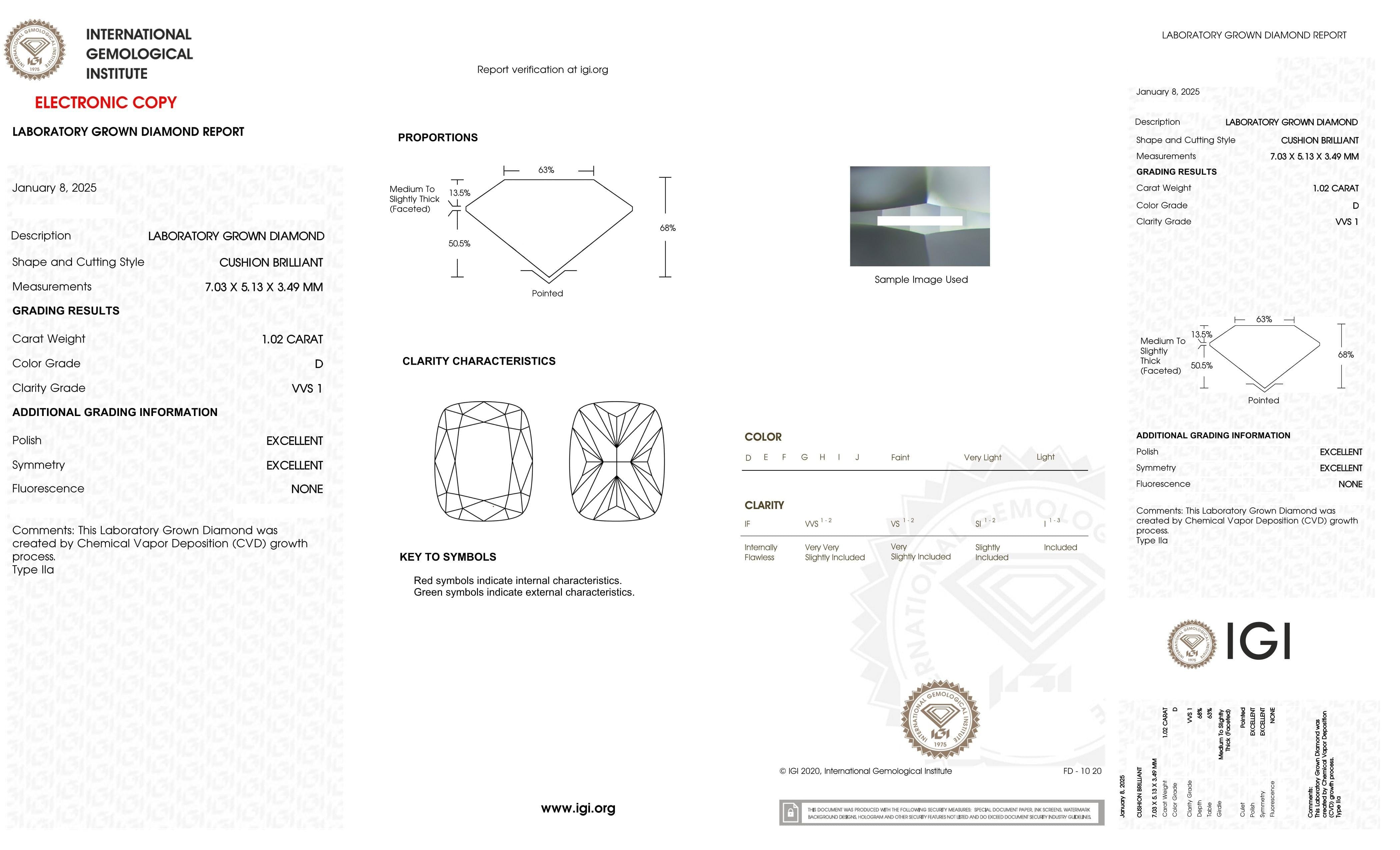 The Center Diamond is Certified by IGI - International Gemological Institute